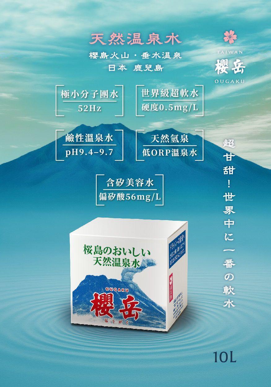 櫻岳溫泉水、櫻島名泉、日本溫泉水、超軟水、天然鹼性水、含氫泉水、低ORP飲用水、偏矽酸美容水、甘甜柔軟礦泉水、家庭飲水推薦、健康飲水首選、富含美人元素、礦泉水推薦、泡茶烹調好水、首購優惠買一送一